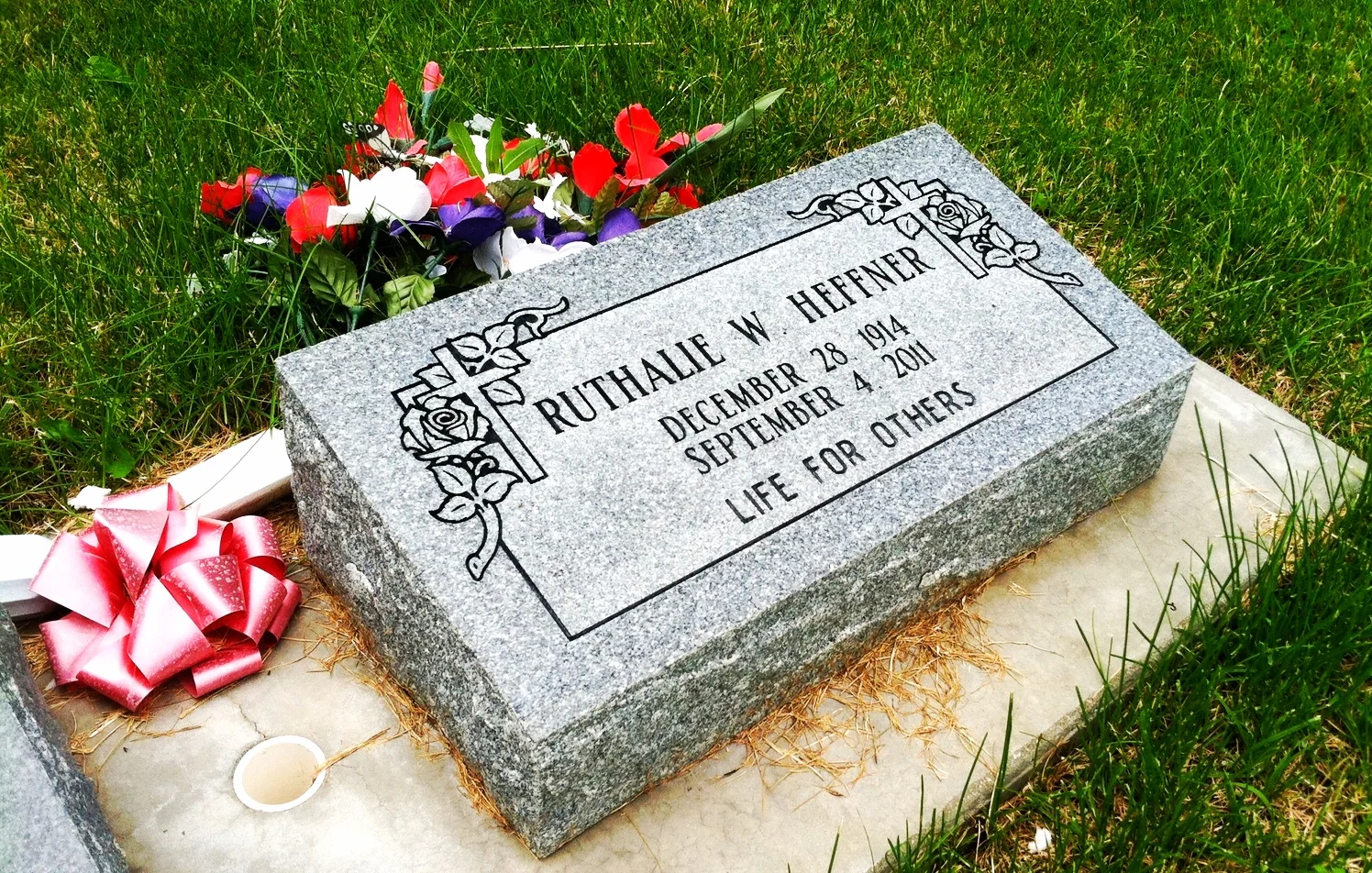 Bevel monuments are also referred to as Pillow Markers. They are a very simple memorial which has a straight angled top surface. The back is generally 2" taller than the front, which allows for runoff of rain or snow.